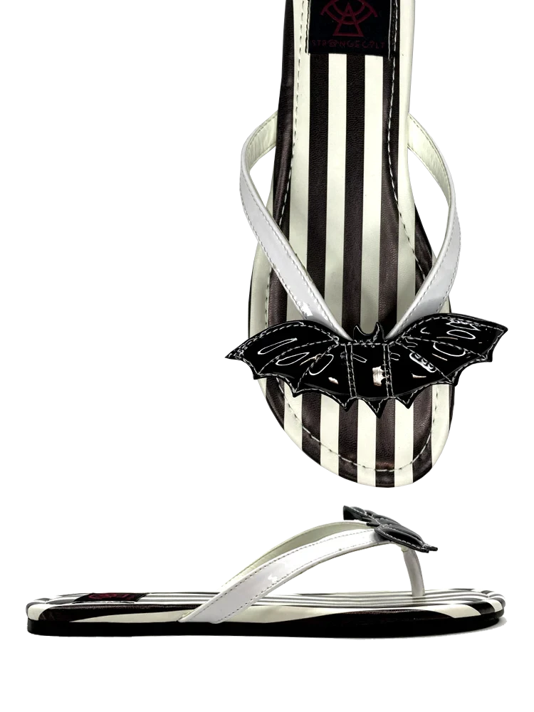 Go Batty this Summer with these rad Black & White Striped Bat Sandals by Strangecvlt.