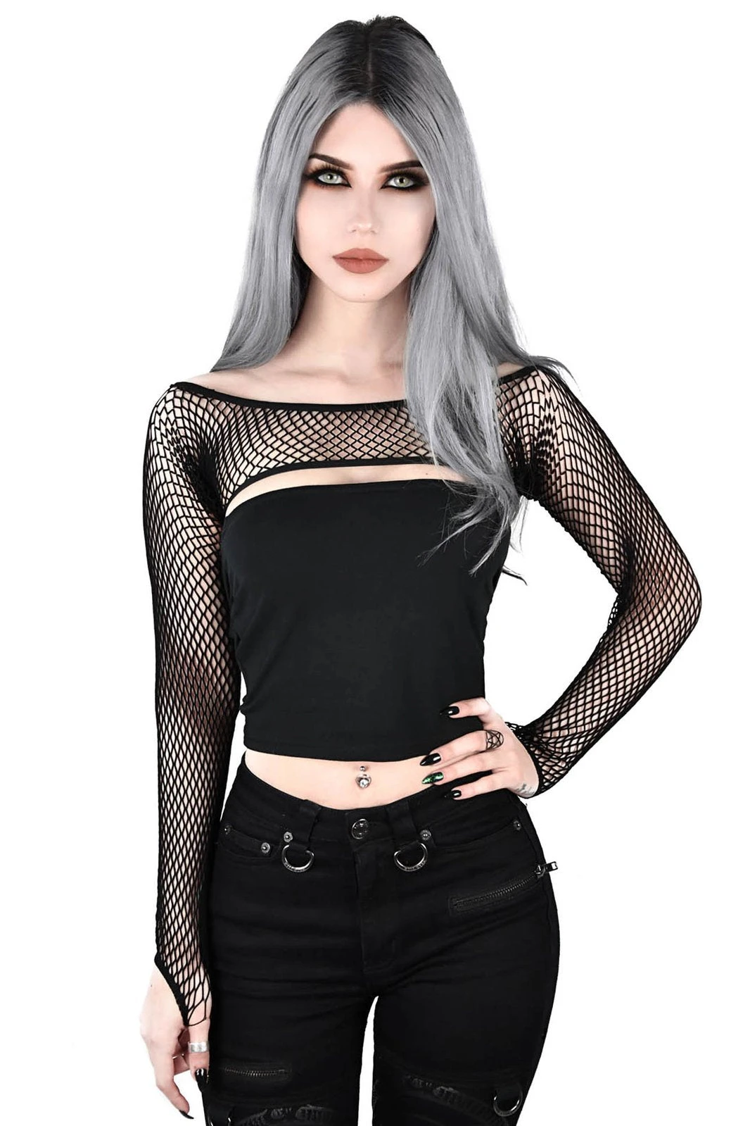 Don’t fear to fall – just get back up or you risk not getting anywhere at all. Hot AF fishnet ‘Bite Me’ bolero in a soft nylon mix with super stretch; wide neckline with long sleeves. Purrfect for your black on black wardrobe.