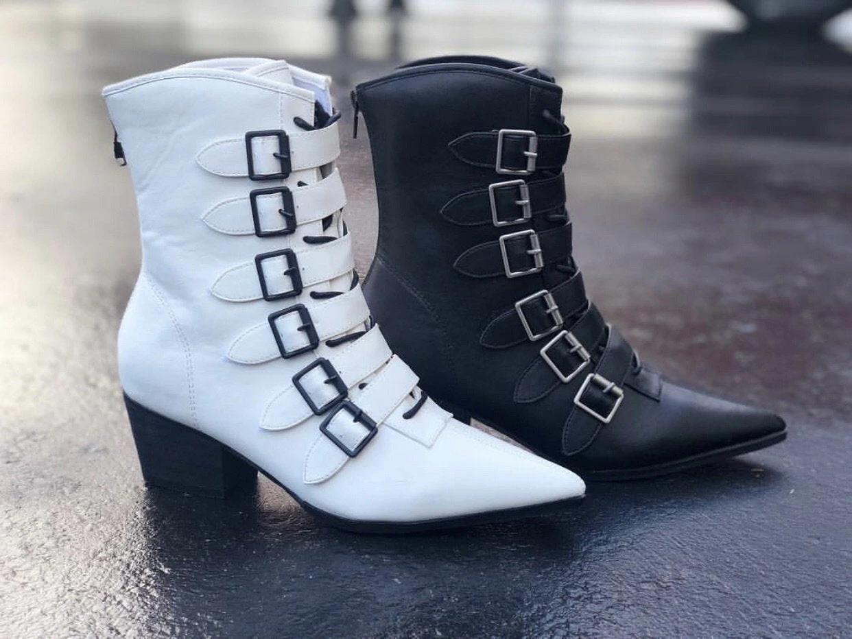 Your dark witchy heart will swoon for these new Coven Boots! Lace up & buckle up classic pointed toe with a chunky heel. Perfect for midnight soirees.