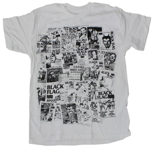 Killer Black Flag shirt with iconic fliers on the front