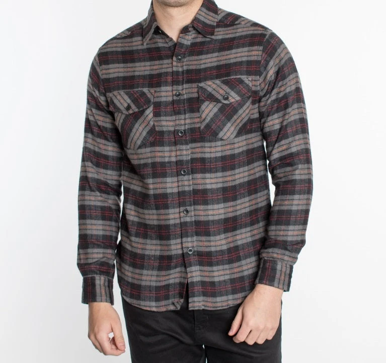 Classic Black & Gray & Red with accent colors. Plaid Flannel Shirt