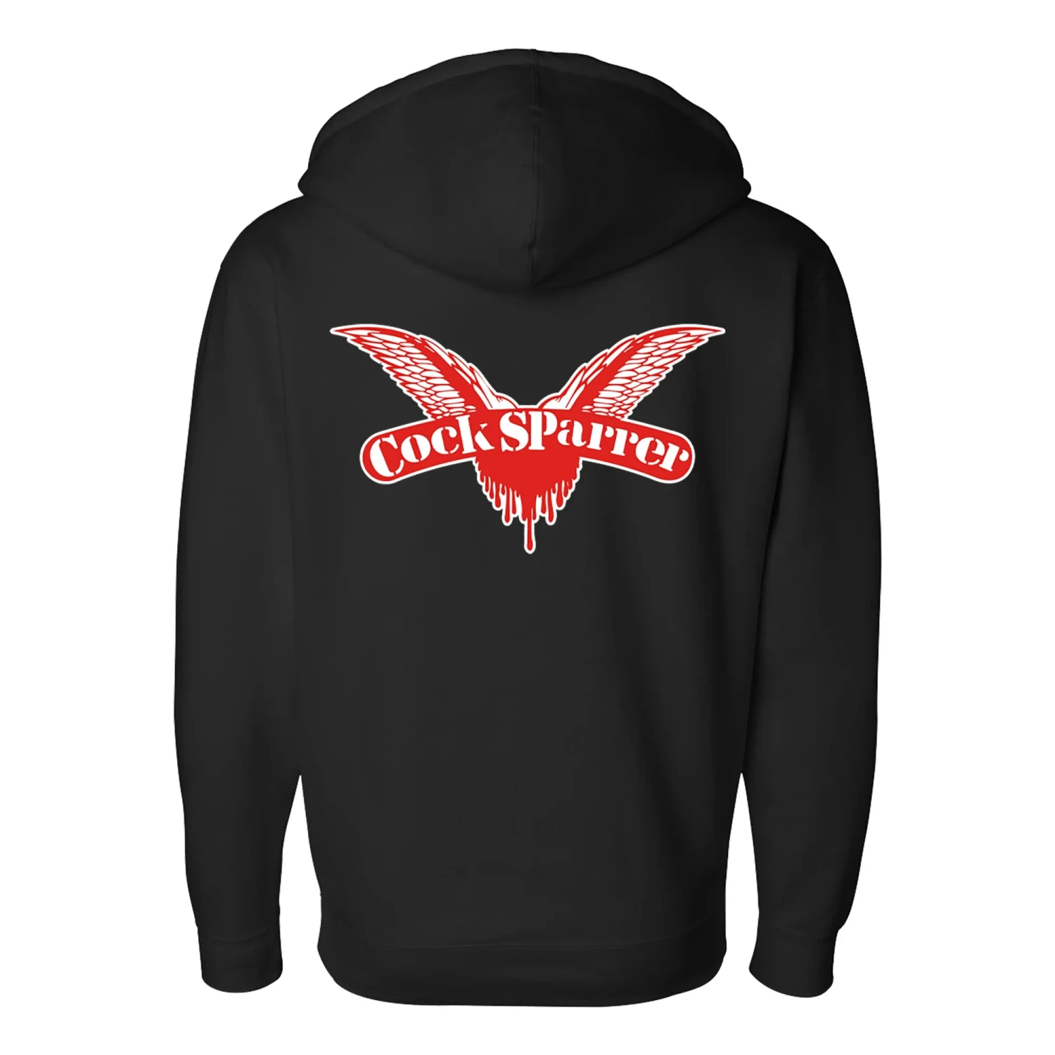 This hoodie features the iconic red & white Cock Sparrer “Wings” logo printed on the front left crest and back