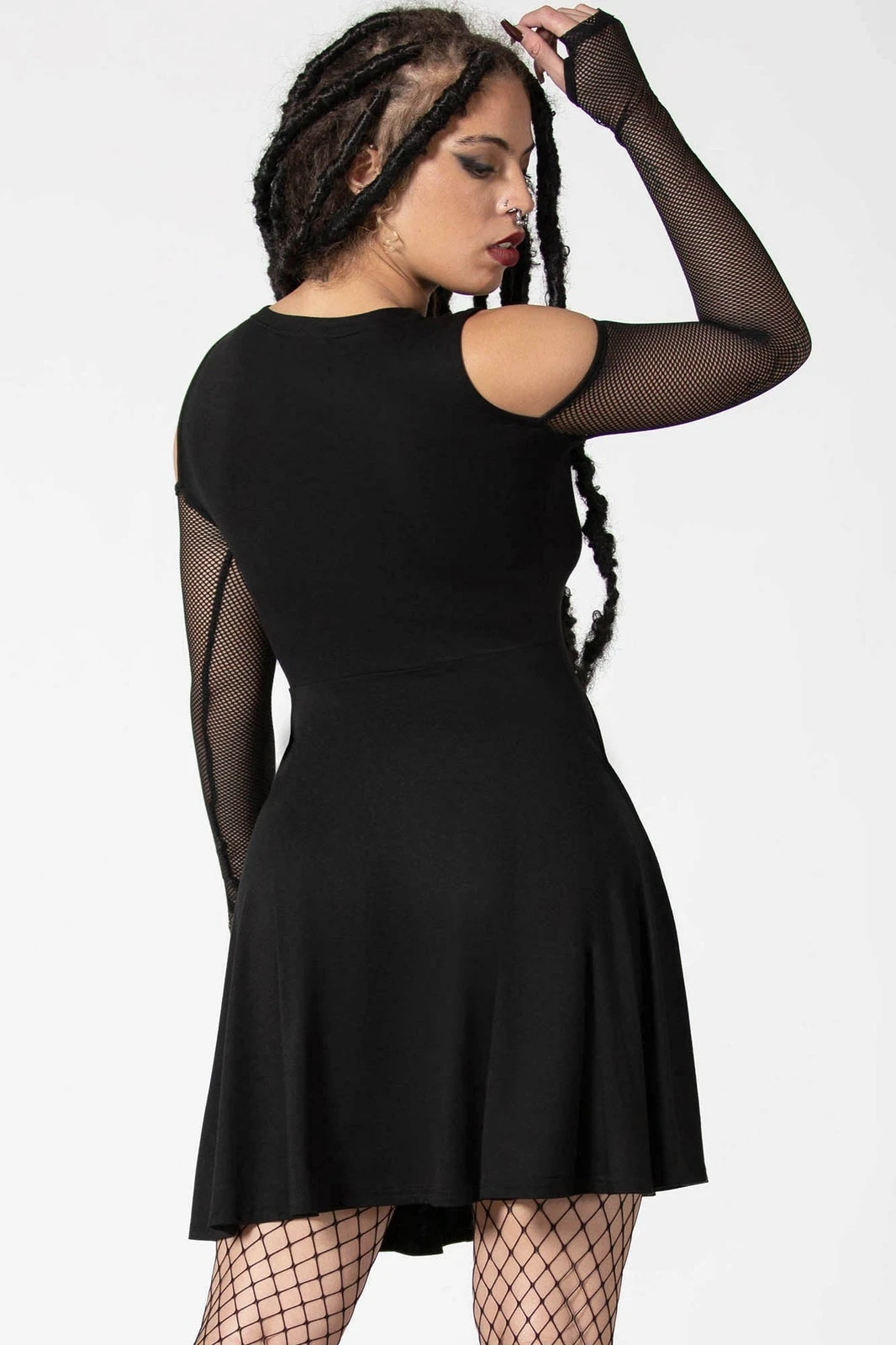 Add attitude to your wardrobe with our ‘Corin’ long sleeve dress. Crafted in soft, stretch fabric featuring long mesh sleeves with thumbhole, metal hard wear details and keyhole cut out this dress is perfect from dusk till dawn.