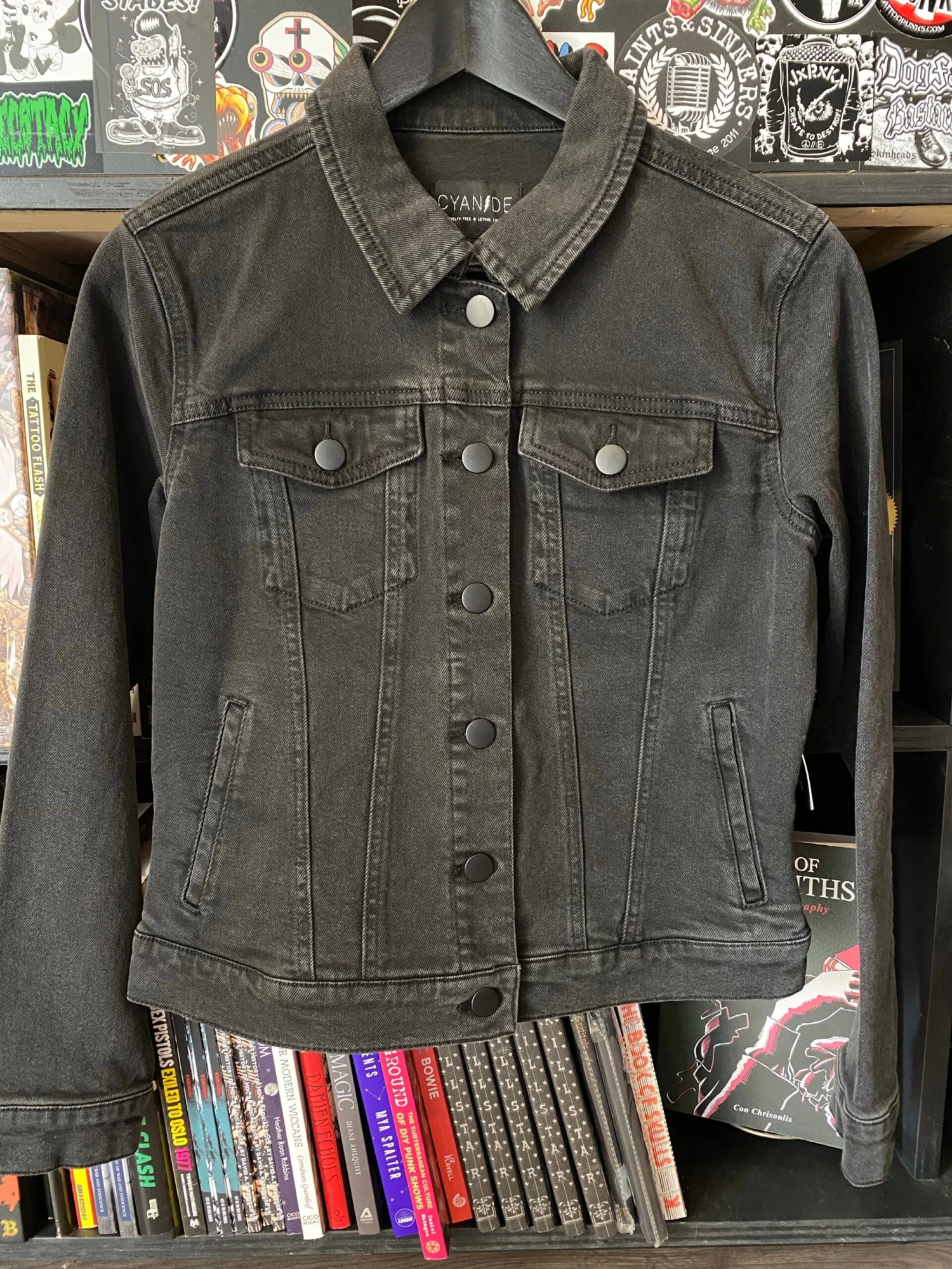Featuring a high quality, sturdy, stretch denim fabric, with double inside pockets, perfect for storing your phone, keys, etc at gigs, or while out on the town. All buttons are functional, and it also has 4 outer pockets, two up top with button closures, and 2 side pockets for keeping those hands warm or your phone handy. All the details on this jacket make it a staple that you will never want to take off!Â