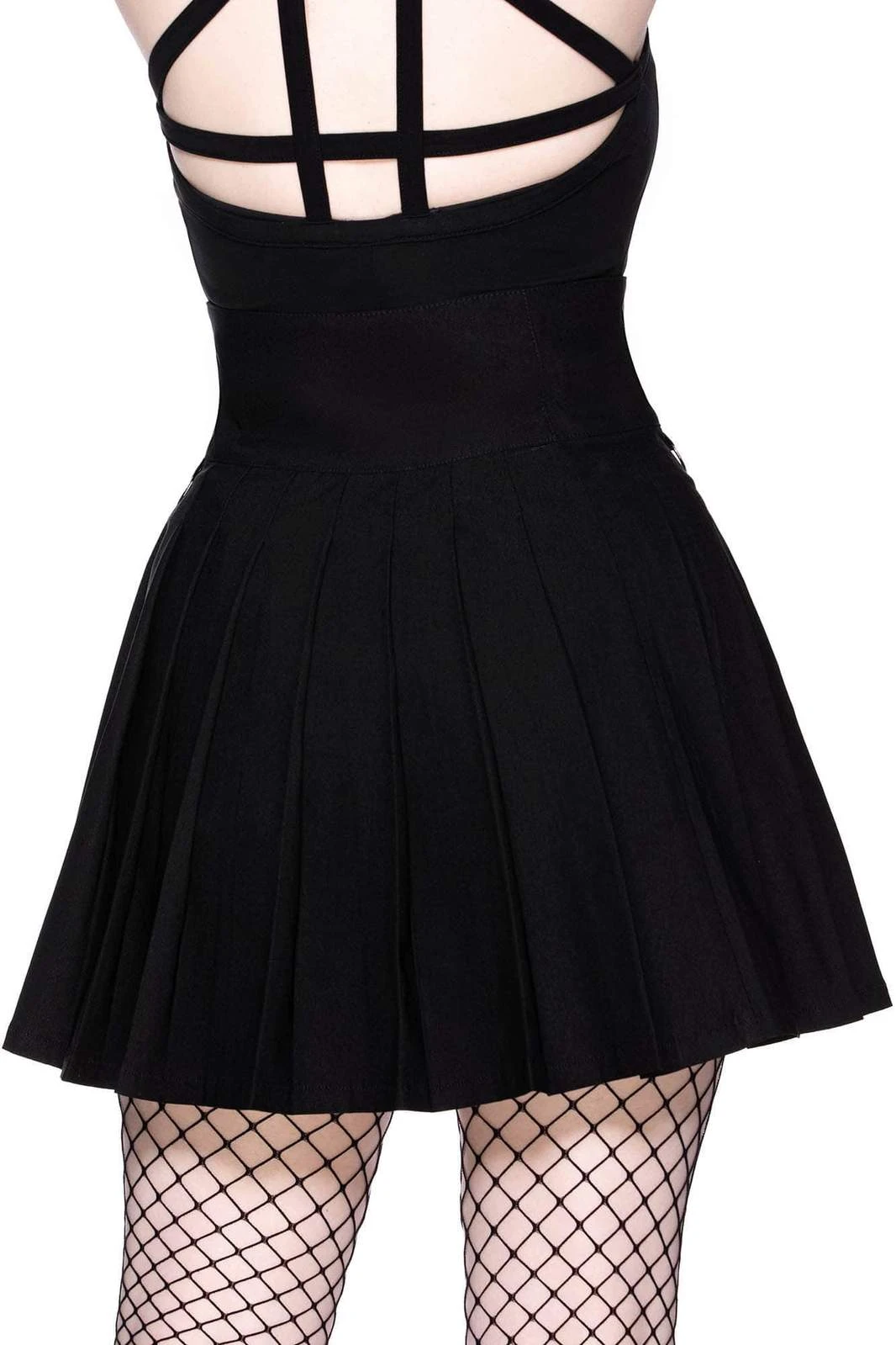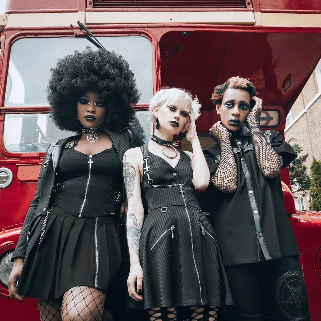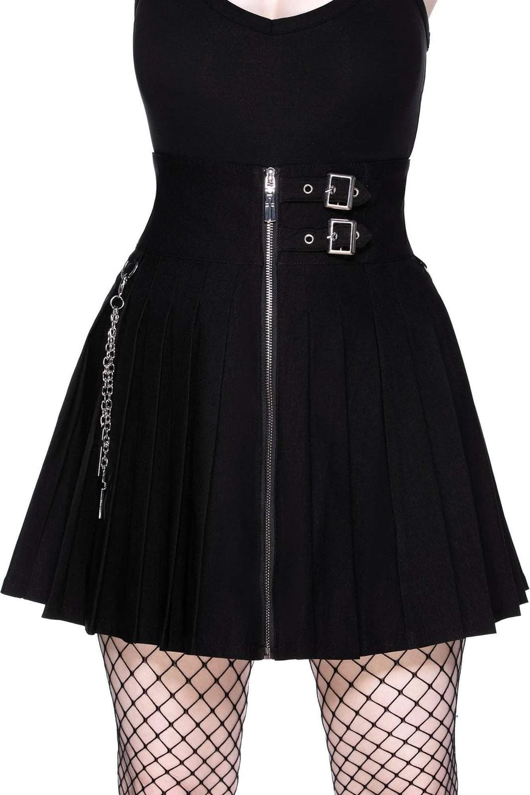 The moon’s my teacher, and I’m her student. ‘Devil In Disguise’ skirt with a statement front zip, pleated style, chains with crosses hardware and side straps and buckles. Made from super soft fabric which hugs your body in all the right places. Easy to dress up or down, depending on yer mood [or moon] Match with cute crop tops, shirts, knits – you name it!