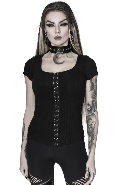 Our not-so-basic basics, featuring the ‘Eye C U’Â top – made from our soft-stretch jersey for a comfortable and flattering fit. With a large round neck, cap sleeves and statement hook+eye feature down the front. Versatile and easy to style for your daily adventures! Hell yeah!