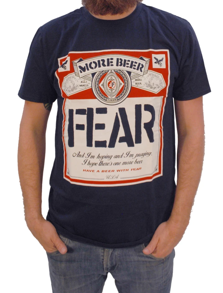FEAR – “BEER KOOZIE” MENS NAVY T-SHIRT.