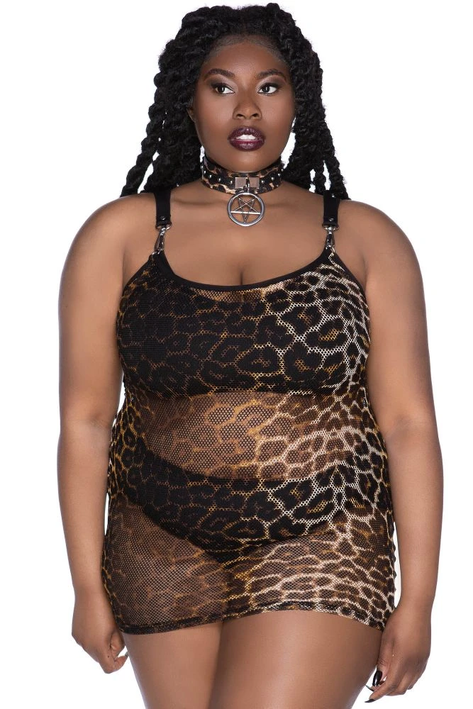 Feel the heat with the ‘Feral AF’ fishnet dress – featuring a super-stretch body, which stretches to perfection for a body huggin’ fit. Low neckline and statement straps. Perfect for layering!