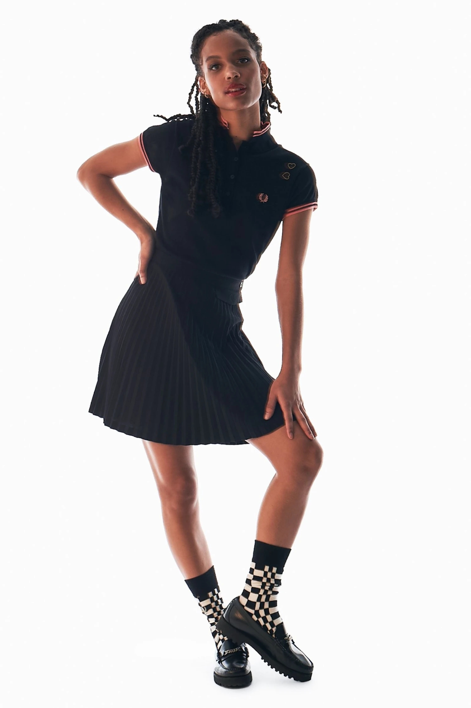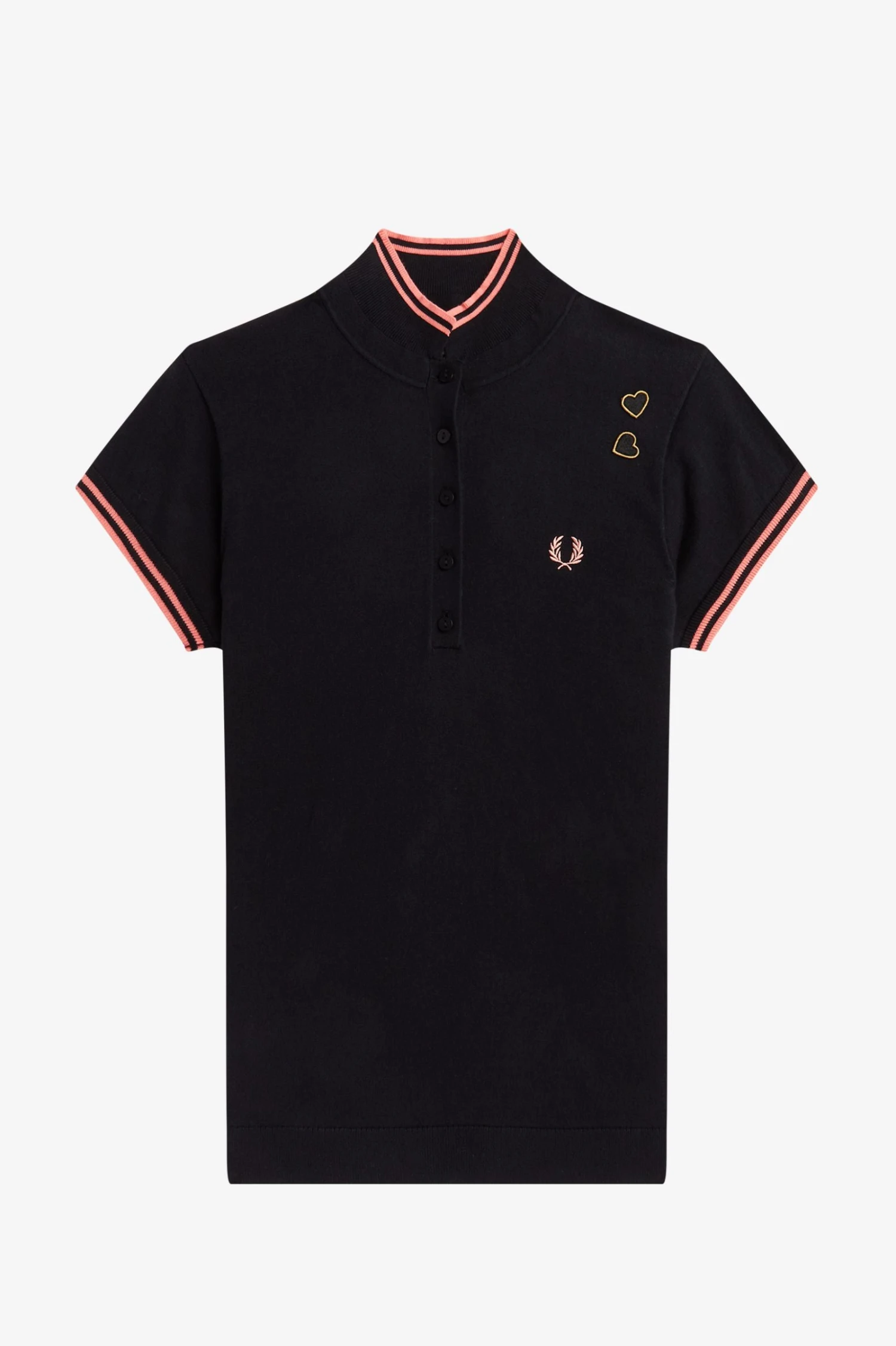 Referencing Amy’s original designs for us, we adapt the Fred Perry Shirt with a knit structure and two signature love hearts above the Laurel Wreath.