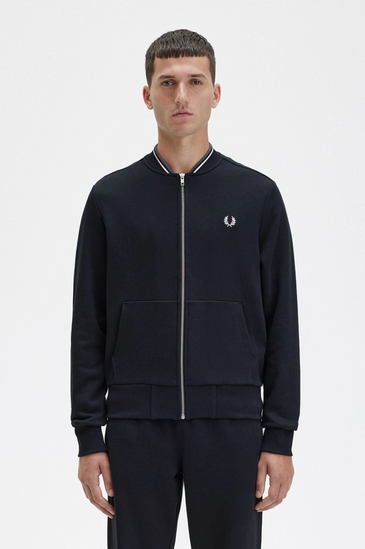 The tennis bomber was the original warm-up jacket from the courts of the ‘50s – taken from the shoulders of tennis champions, onto the backs of British subcultures. Adopting the traditional silhouette, this version is made in loopback cotton sweat, inspired by sports training gear.