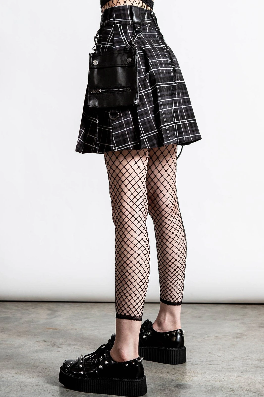 Make a statement in our ‘Gunner’ pleated skirt. This rockin’ skirt is conjured from super-soft woven fabric with some stretch for the perfect fit. Features a blood tartan print, a pleated design, small side pouch and silver hardware. It’s the must-have skirt!