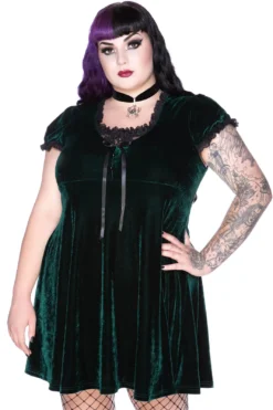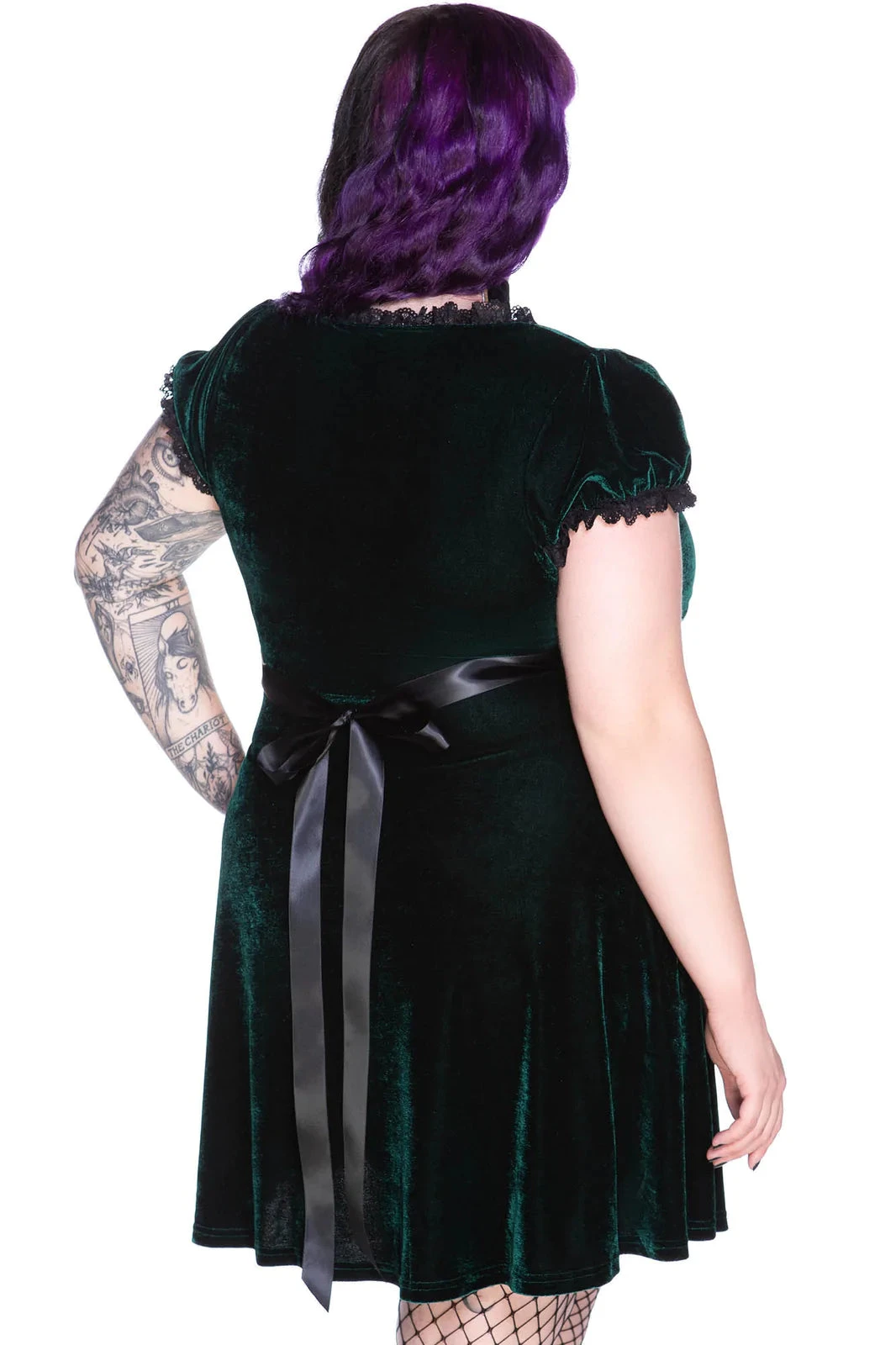 Real-life [baby]doll dress with some romantic detailing – bringing you a perfect balance of sweetness to the dark abyss. ‘Heather’ velvet babydoll dress is an ultra-soft stretch-velvet dress with a cute cap sleeve, delicate lace-trim accents and low neckline. Statement satin lace to the front for some added drama. Purrfect for playdates, picnics under the moon and epic festival lineups alike!