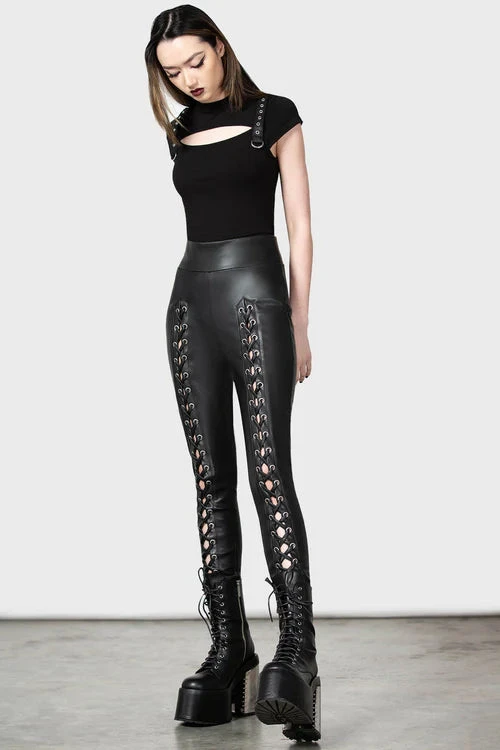 – Statement lace up detail.