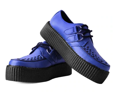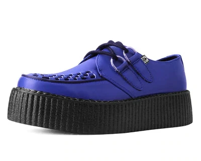 Score a wardrobe win with these classic round toe creepers that offers our same bold, iconic style in a vegan alternative option. Has a blue upper made of our high quality TUKskin™ material — polishable synthetic faux leather that is both soft and breathable. Features black woven interlace detailing, lace-up fastening, and our lightweight VIVA mondo sole that is approximately 1 ¾” at the heel and 1 ¼” in the front. Has removable memory foam padding for added comfort. Shoe can be easily cleaned with mild soap and water.