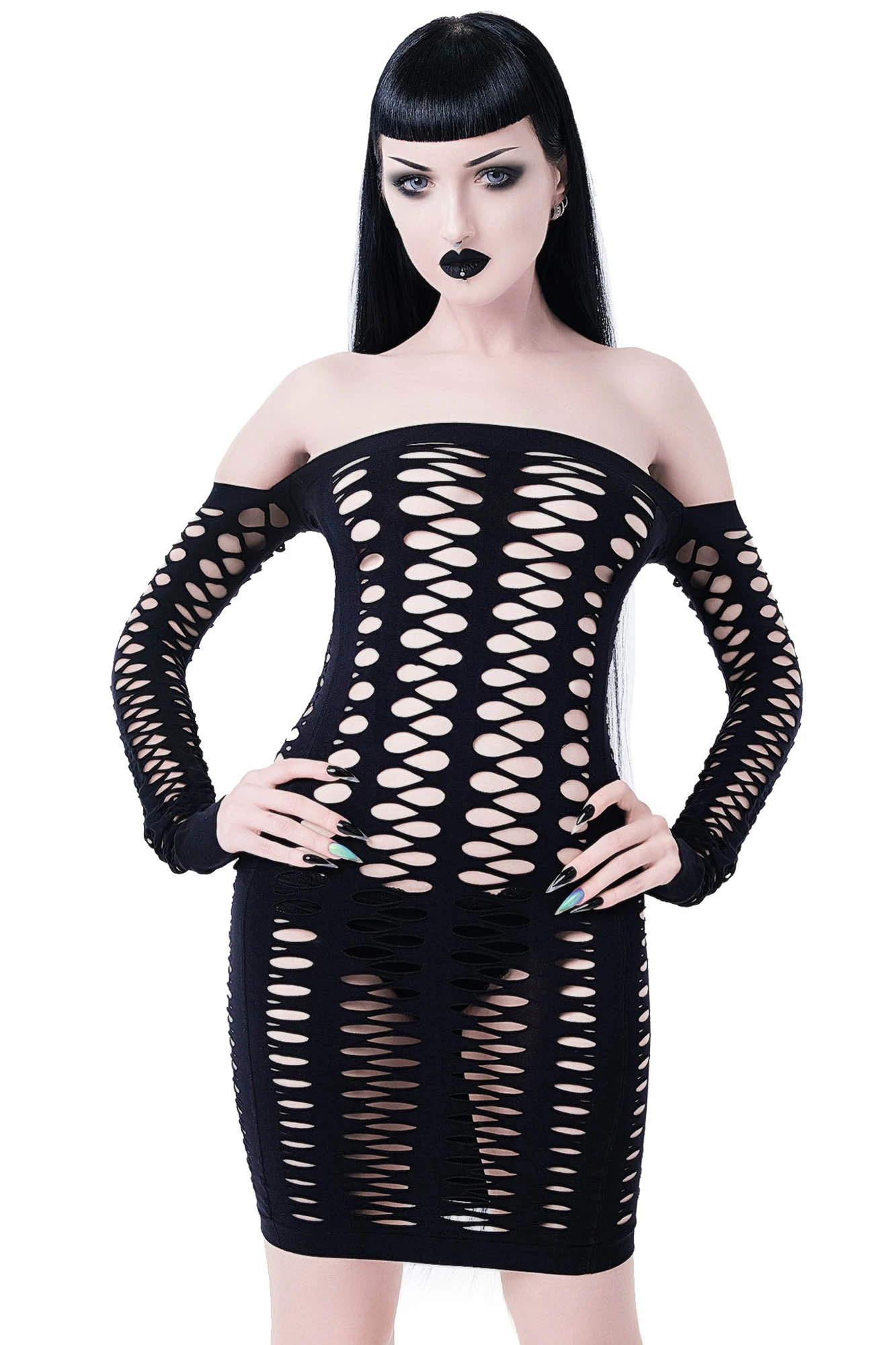 Feelin’ the heat with the ‘Lizzy’ statement dress – featuring a super-stretch body loaded with slashes all-over. Bardot neckline and long sleeves. Perfect for layering!