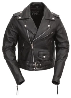 Classic Womens Leather Jacket – Featuring a classic motorcycle style w/ snap down lapel, collar, and zippers in all the right places!