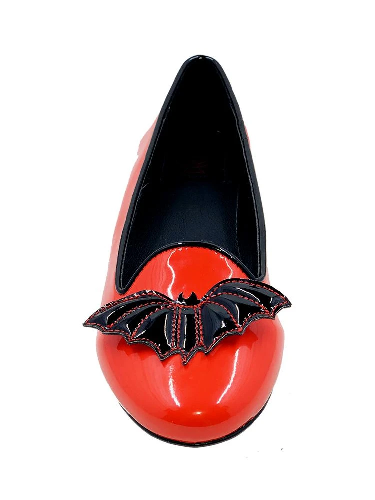 Strangecvlt Brand New Lydia Red & Black Bat Flats are here! If Halloween is Everyday is your world, we’ve got the shoes for you! Fully vegan, with 3D Bat detail on the top and a cozy slip on style. Get these before they fly out of here!