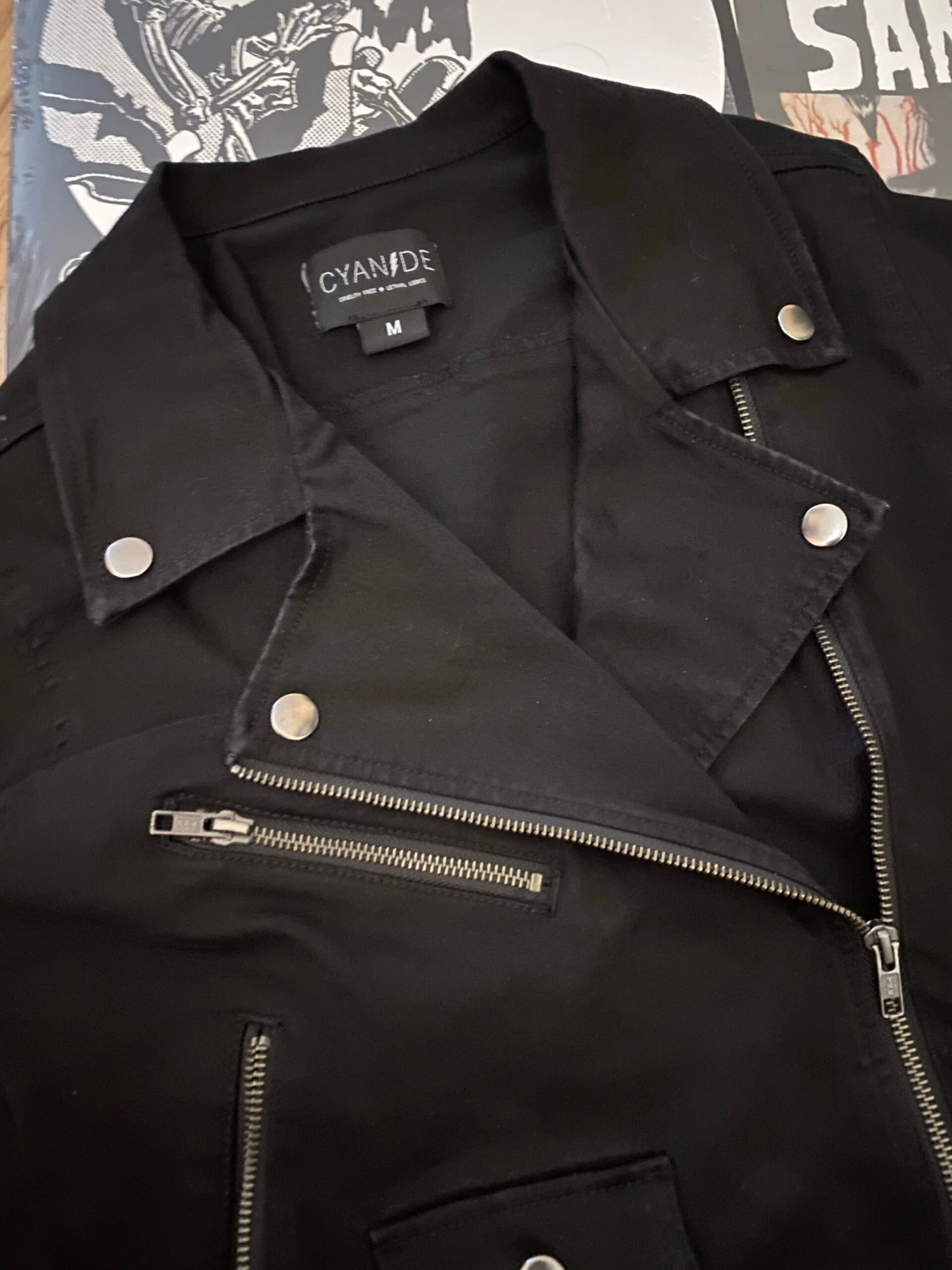 “Got the radio on …. I’m like the roadrunner” The Roadrunner Motorcycle inspired jacket has all the bells & whistles! Featuring a high quality jet black stretch denim fabric, darkened metal zippers & snaps. All snaps are functional, and it also has 3 outer zipper pockets, plus a small snap pocket on the front. All the details on this jacket make it a staple that you will never want to take off!