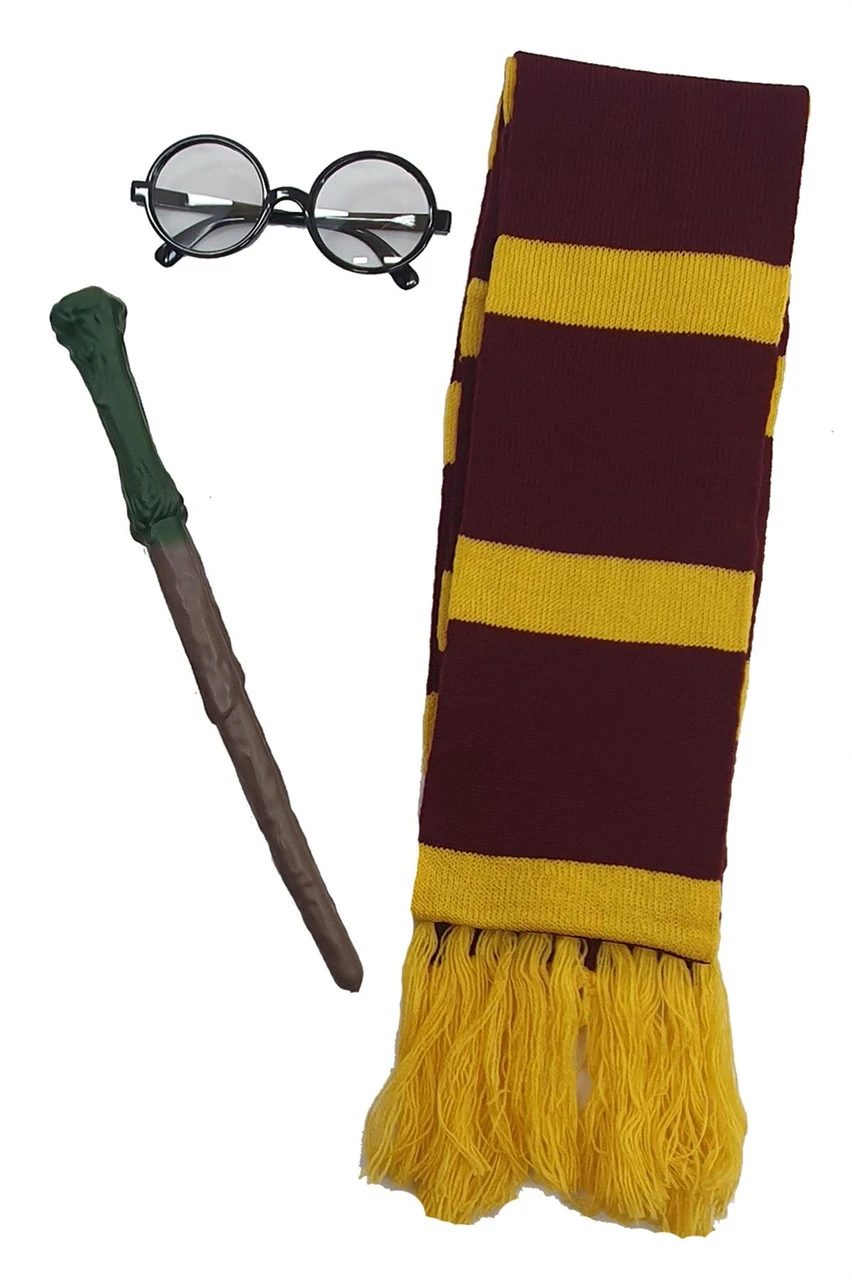 Includes: Hooded Wizard Robe, Glasses, Scarf & Wand