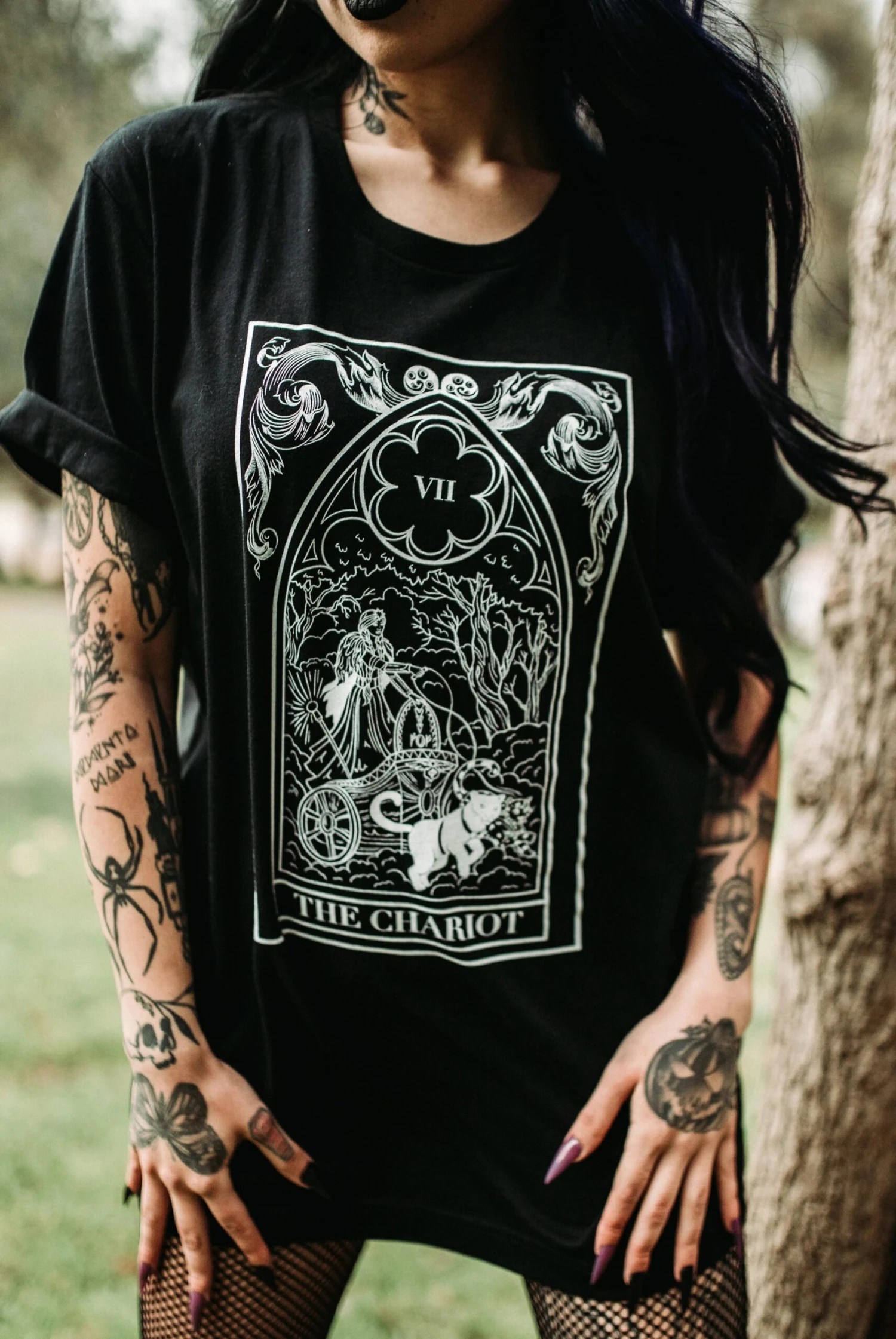 This printed tee comes in black for a stand-out look you’ll love, and it features our exclusive Judgement tarot card on front. The crew neckline and 100% cotton construction make this tee comfortable for all-day wear, and the short-sleeve cut means it’s perfect for layering. Wear this tee with your favorite denim or leggings for an easy-to-wear look you’ll love!
